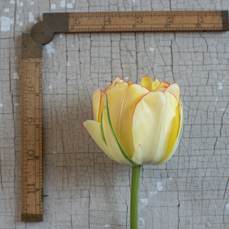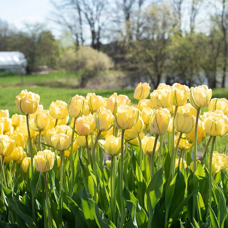 An early, vigorous double tulip. The pale yellow, layered blooms are 3–3 1/2″ wide, long-lasting, with a delicate touch of red tracing the petal edges. A 2007 introduction and a sport of the ‘Jewel of Spring’ tulip. A Darwin Hybrid type. 12 cm+ bulb size. 1 unit = 1 bulb. NOTE: Bulbs do not come pre-chilled; if growing in hardiness Zones 8–10, see growing information (below) for pre-chilling instructions.