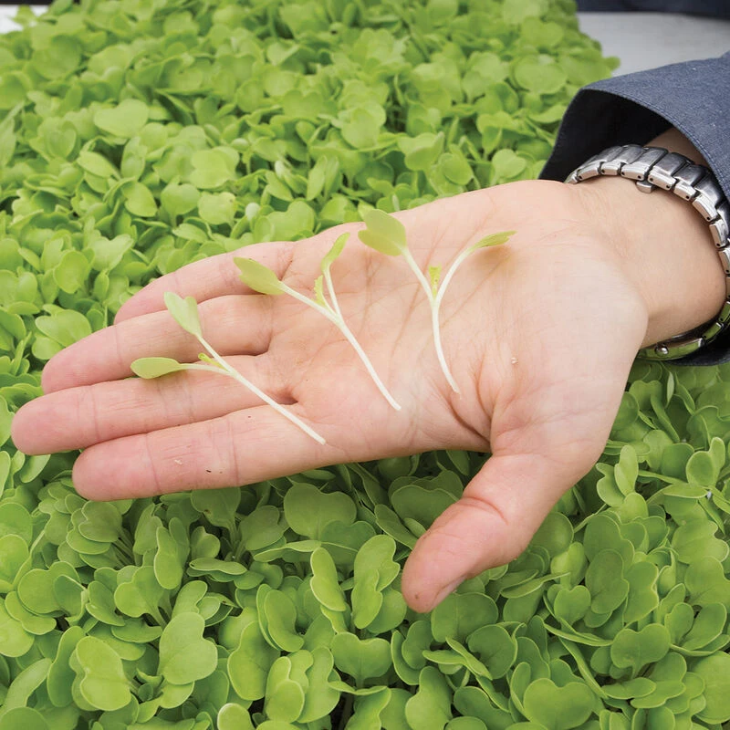 One of our fastest-growing microgreens! Pale green color blends well and beautifully complements dark green and dark red varieties in mixes. Mild and earthy brassica flavor. Based on our yield trial, we recommend seeding 14 gm per tray at approx. 2 flats per oz of seed. Avg. days to maturity was 10 days when harvested at the first true leaf (as opposed to cotyledon) stage. Faster, more attractive, and easier to grow than Kogane, which it replaced.