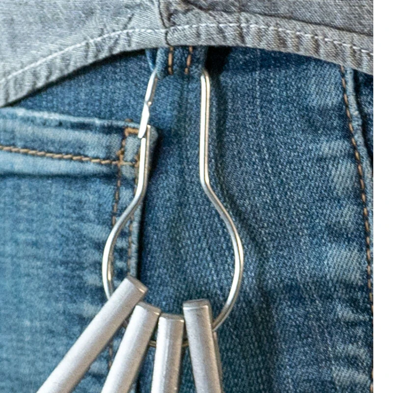 Convenient stainless-steel clip slips through the hole in the Connecta heads, allowing you to bring multiple heads into the field with you.