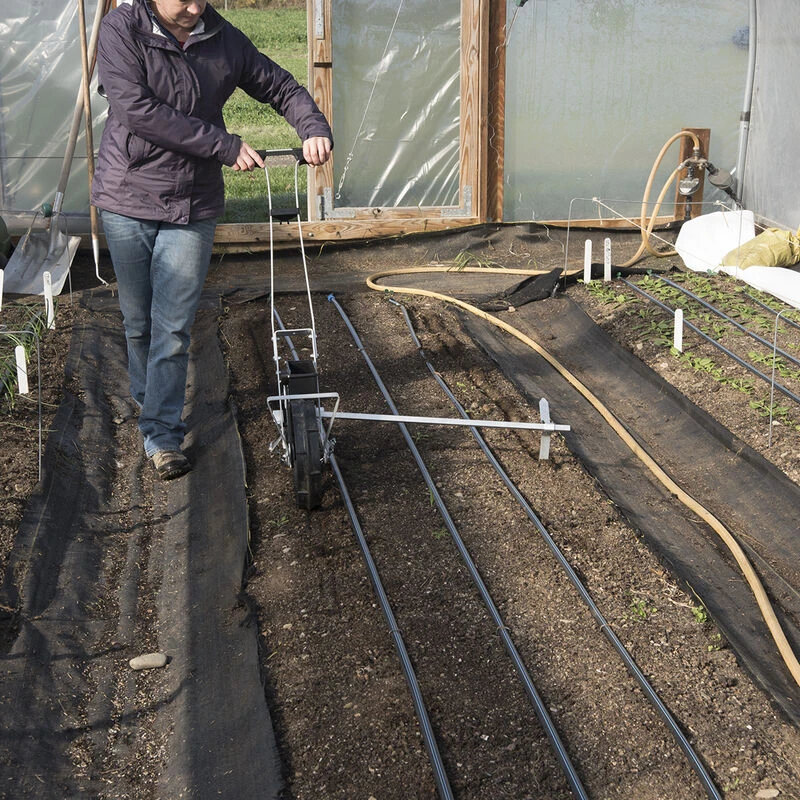 This lightweight, aluminum frame seeder is easy to use and great for accommodating a diverse range of seed sizes. Includes 7 seed plates for sowing a variety of crops at a set spacing: sweet corn, radish, carrot, peas, beans, beets, hemp, and more. Quickly set the seeding depth in the field — no tools required. Adjustable row marker folds up when not in use. NOTE: Not for use with pelleted seed.