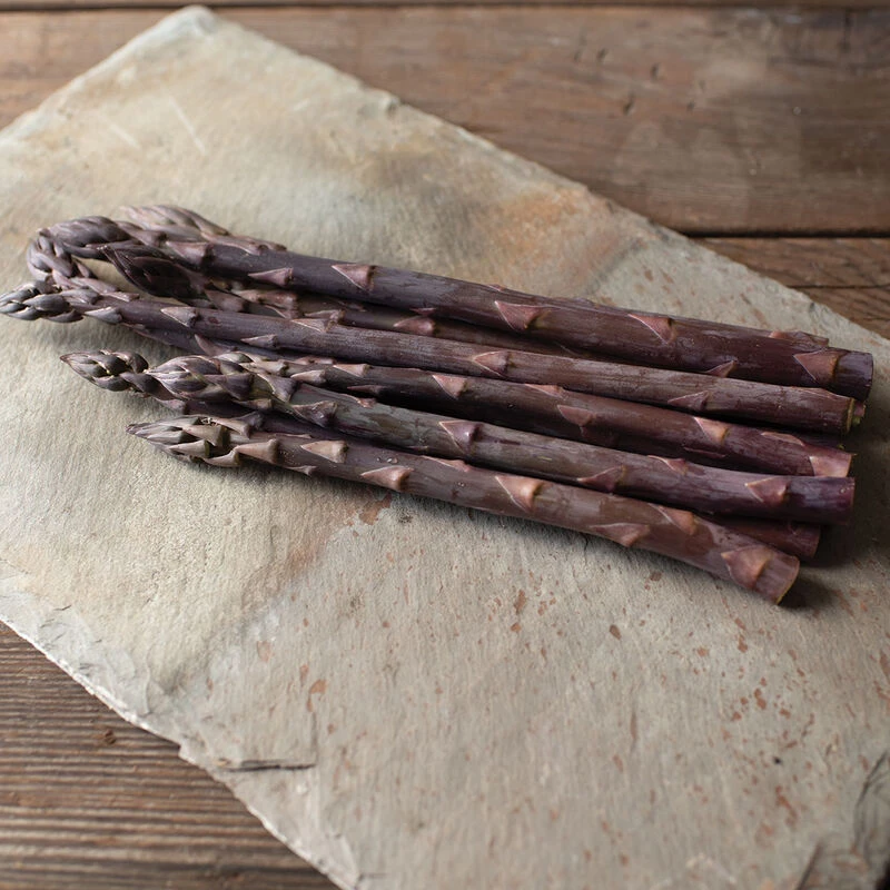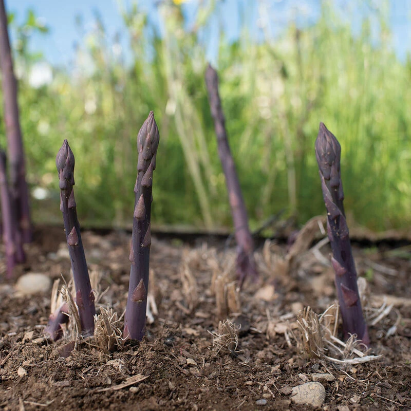Tender, great-tasting spears. Higher yielding than Purple Passion with darker color and more uniform/standard size. 100% male plants for increased productivity over Purple Passion, which has only 60% males. Tips remain tight, even in warm weather. Improved winter survival in our trials compared to Purple Passion. Color fades when cooked, but excellent flavor is retained. NOTE: Purple color can turn green/brown during hot weather or if not harvested on time. Crowns are one year old.