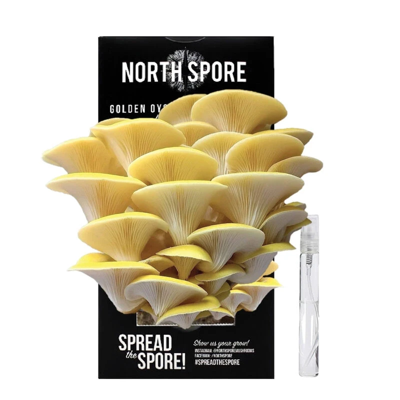 Grow mushrooms indoors year-round! Golden Oysters yield radiant mushrooms that almost glow. Their airy and delicate clusters consist of yellow caps and long ivory stems. Caps begin as a deep golden and mature to a bright yellow. This flavorful species boasts a nuttiness reminiscent of cashews, adding a unique dimension to dishes.