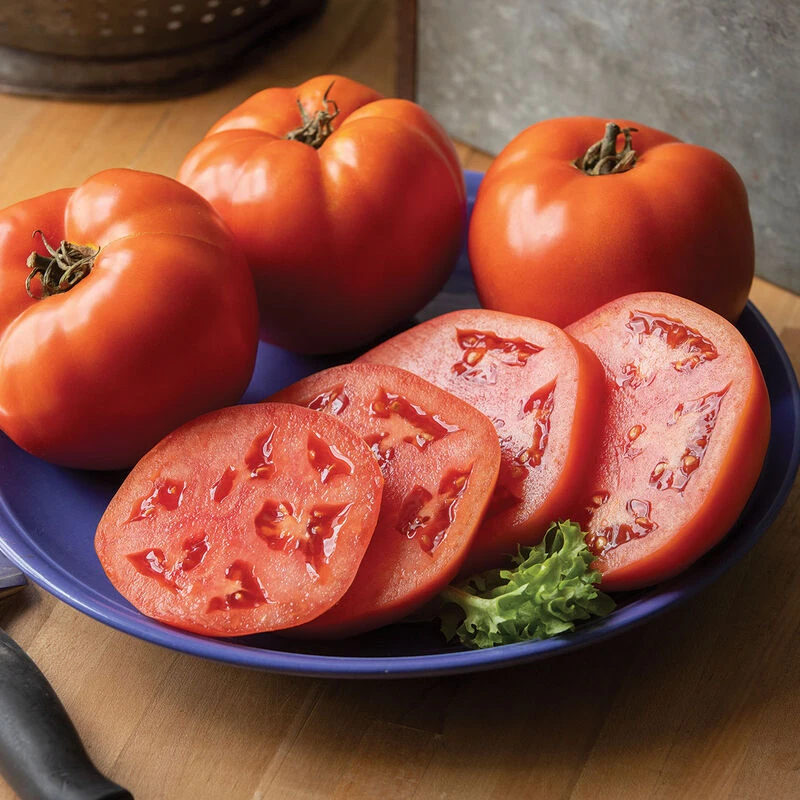 An excellent choice for the South for its heat-setting ability and improved TYLCV resistance. Tall determinate plants produce high yields of large, 10–14 oz., high-quality beefsteaks with a deep-oblate shape. Determinate.