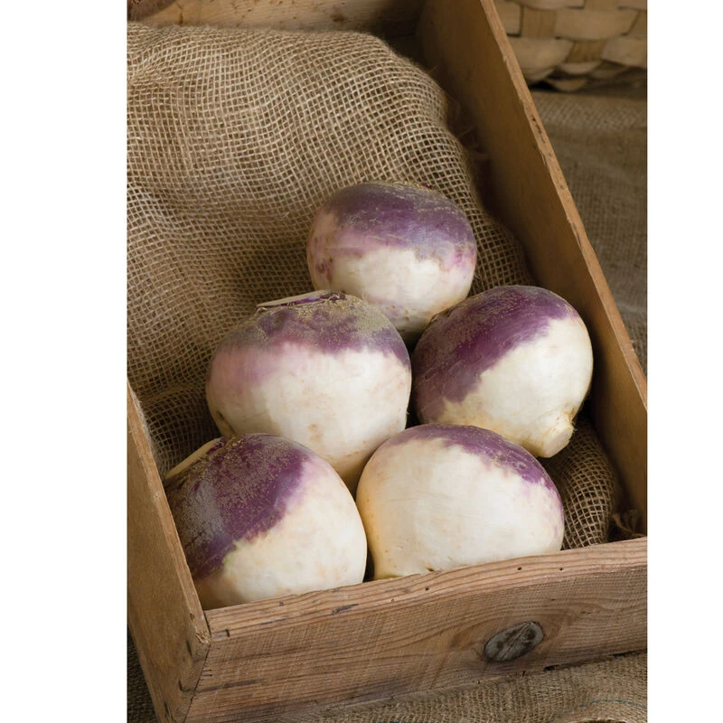 | CULTURE | Rutabagas prefer well-drained soils abundant in potash and phosphorus, with a pH range of 6.4-6.8. For customary fall and winter use, plant in late spring, early summer, or about 90 days before intended harvest. Sow 6 seeds per foot, 3/8" deep, thinning to 6" apart, in rows 18-24" apart. |