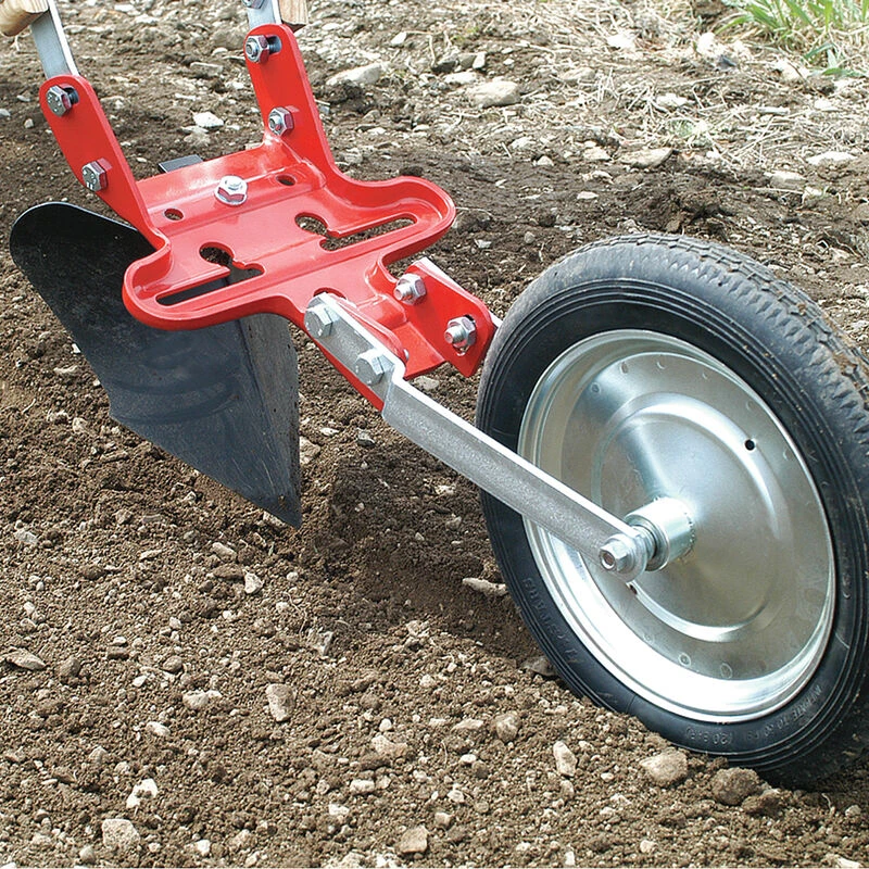 V-plow for creating deep furrows for planting and can also be used to hill carrots, leeks, bunching onions, and others.