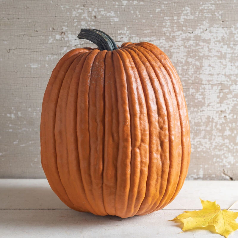 The perfect Halloween jack for attracting attention, whether at the farm stand or the front door. Tall and lurking, Igor is very uniform in size, shape, and menace. Dark orange skin, deep ribs, and a pronounced shoulder create a foreboding look, while a strong handle carries the weight well. Avg. 25–35 lb. NOTE: It’s pronounced “Eye-Gor!” Bred by Dr. Lindsay Wyatt at Johnny’s. Also available treated.