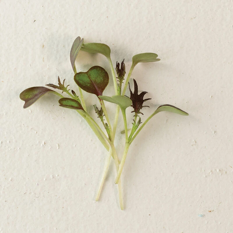| CULTURE | Grow in a greenhouse or protected area. Follow the germination guidelines for the specific variety being grown. However, you can generally be successful by following the guidelines for brassica family members: grow on potting mix or soilless medium of your choice in shallow trays or 20-row flats. Broadcast seed thickly on the media surface with seeds 1/8- 1/4" apart, press seeds firmly into media for maximum soil contact, and cover lightly with sowing mix, vermiculite, or humidity dome. Microgreens can be germinated on heat mats, in germination chambers, or on greenhouse benches or floors. |
