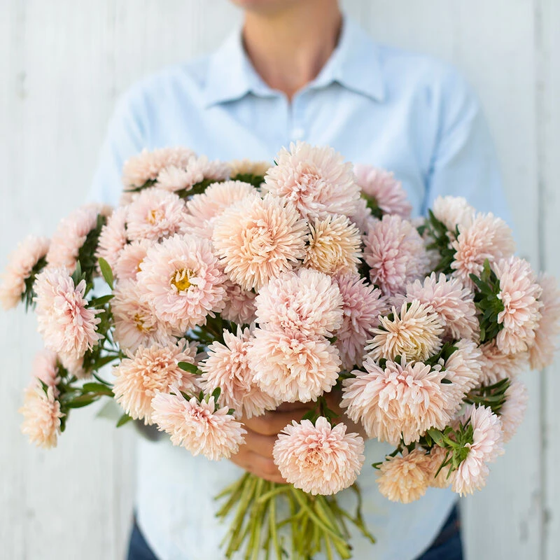 2 1/2–3″ double and semidouble, light apricot-colored flowers. Compared to Tower Chamois, King Size Apricot plants are taller and equally as productive, blooms are similar in size and a shade lighter with a warmer (creamier yellow) tone, and petals are only slightly curled (whereas Tower Chamois’ petals are heavily curled inward toward the center of the bloom).