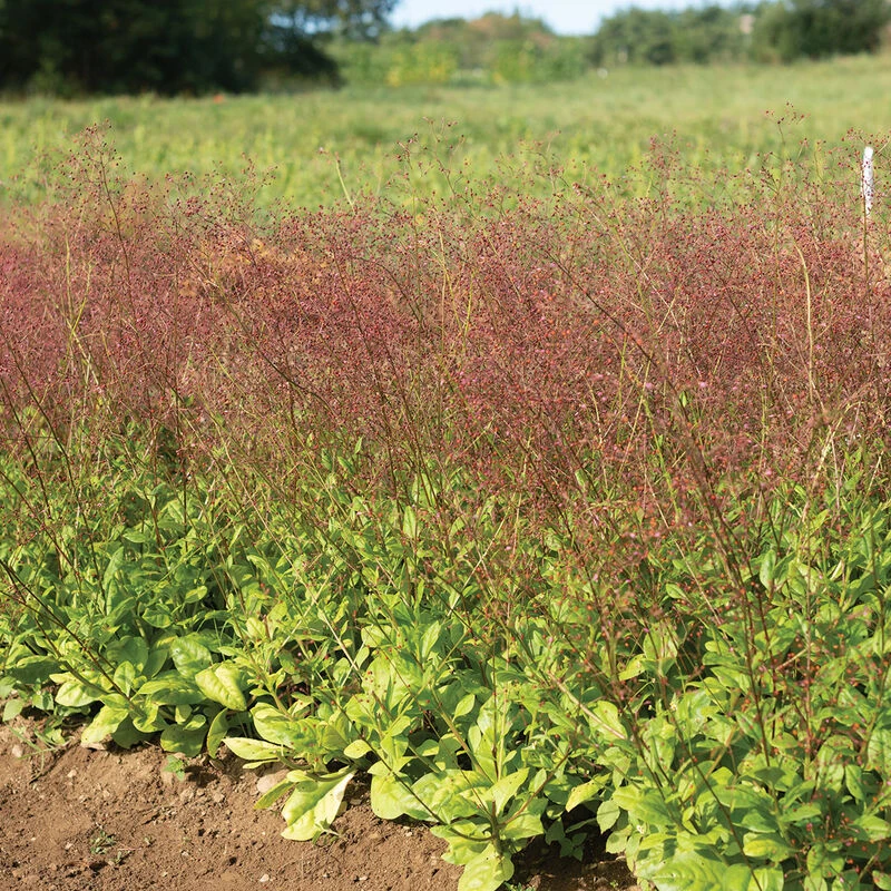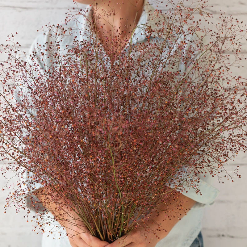 Stems of glossy, bead-like seed pods make any bouquet or arrangement shimmer. Densely branching plants yield multiple cuts over a long harvest window (4–6 weeks). Bright pink flowers quickly mature to shiny seed pods in hues of deep-red, chocolate, and copper. Plants produce small pink flowers that are not useful for cutting, so it is best to harvest when stems turn dark red and most of the flowers on the stem have matured into seed pods. Attractive lime green foliage is borne on compact, mounding plants. The heat- and drought-resistant plants also produce edible greens with a mild flavor and succulent texture. Also known as Jewels of Opar, fame flower, and flame flower.