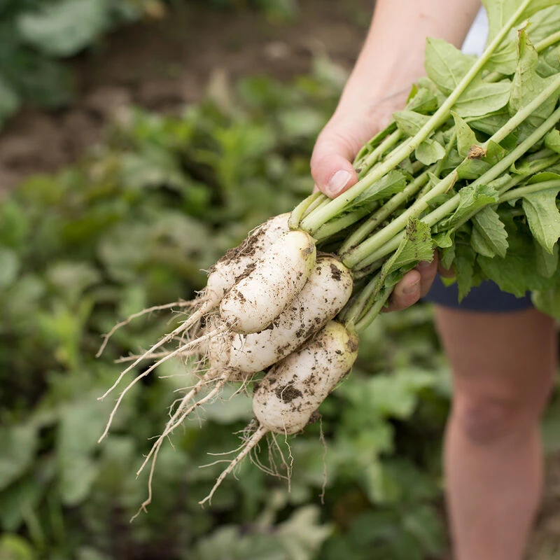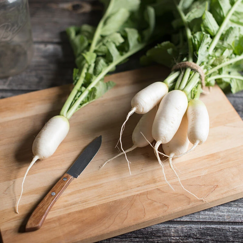 At 4–5″ long x 1 1/2″ wide, it is well-suited for bunching. Authentic sweet and mildly spicy flavor. Highly uniform with good bolt tolerance for spring and summer sowings. 3″ in-row spacing is optimal.