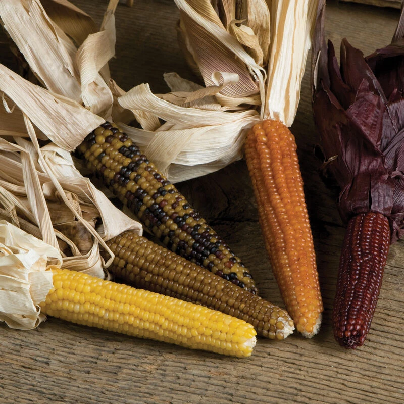 6–7′ plants yield 2–3 multicolored ears averaging 3–4″ each. Space seeds 4–5″ apart for denser stands and smaller ears. NOTE: Also suitable for popping, but only expect about 50% of the kernels to pop.