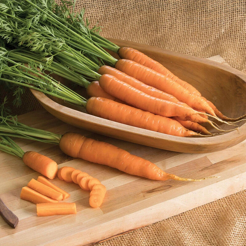 A specialized variety with a sweet taste when sown in fall for winter harvest. In cold regions sow in the greenhouse. In mild regions sow outdoors in the open or protected with fabric row cover. Overwintered crops will take longer to reach maturity. Up to 7″ long, bulky, semi-blunt roots with strong tops. Early Nantes type. Also available with NOP-compliant pelleting.