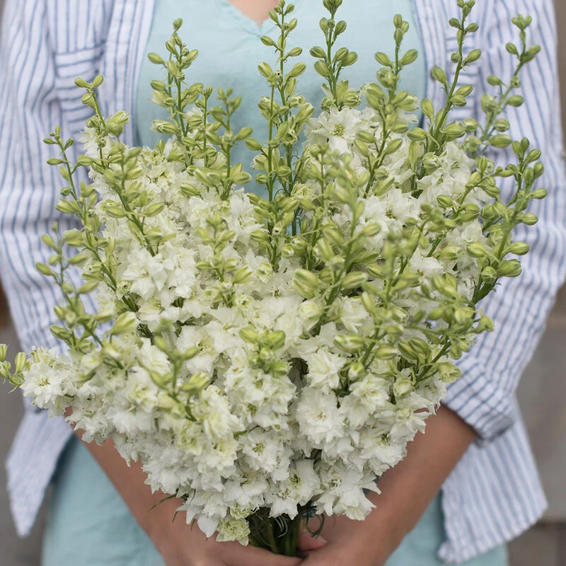 Features tall spires of dense florets. Plants produce snow white double blooms with a small percentage of singles. 1 1/2–1 3/4″ florets on 9–12″ flower spikes. Very similar to the Sublime series, which QIS™ replaced. Attracts hummingbirds.