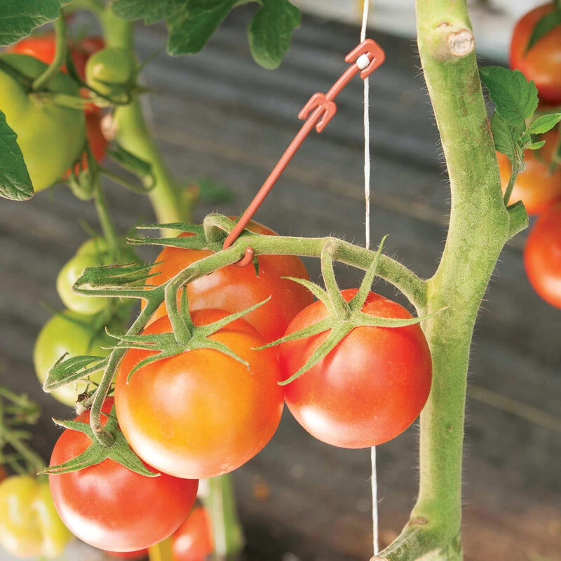Sturdy polypropylene hooks easily attach to trellis twine to support heavy tomato trusses. Perfect for large-fruiting varieties and heavy producers. Easily adjustable and reusable. Rated to hold up to 20 lb. Approx. 4″ long. 13,000 count.