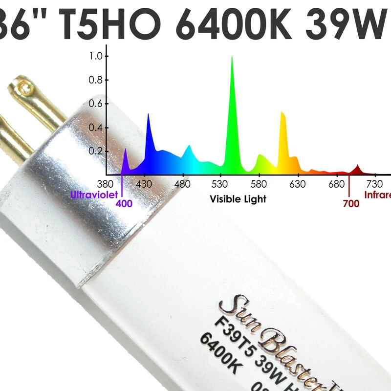 Replacement lamp for 36″ SunBlaster T5HO Strip Light fixtures. Replacing your lamp is recommended after 10,000 hours of operation for optimal growing performance with your T5HO lighting system. 6400K. Quantity: 6 lamps.