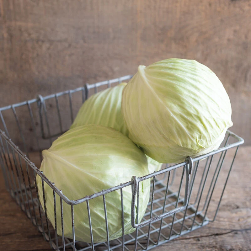 Very good eating quality—much better than a typical storage type—and an excellent choice for sauerkraut as it has a high dry matter content. Suitable for long-term storage into spring. For large, 10-lb. heads, space plants 18″ apart. Not recommended for close spacing. Resistant to thrips. USDA Certified Organic.