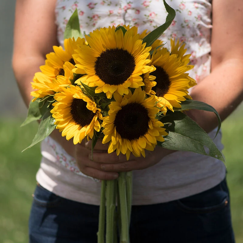This uniform, early sunflower has 4-6″ blooms on long stems. Pollenless. Single stem. USDA Certified Organic.